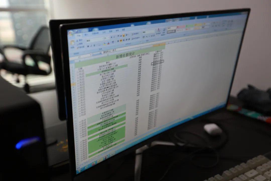 在店家工作人员的电脑中,执法人员发现了一个统计了上百个微信群的文件资料。店家工作人员表示,撕帽茅台会通过微信等线上渠道进行销售流通,这是为了拓展销售渠道而建立的微信群统计表格。
