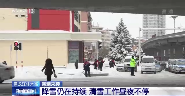 总台记者王海樵:降雪仍在持续。清雪工作昼夜不停,昨夜至今晨,佳木斯全市出动了1400多台专业清雪车辆,1700多人的专业清雪队伍,清雪达12万立方米。