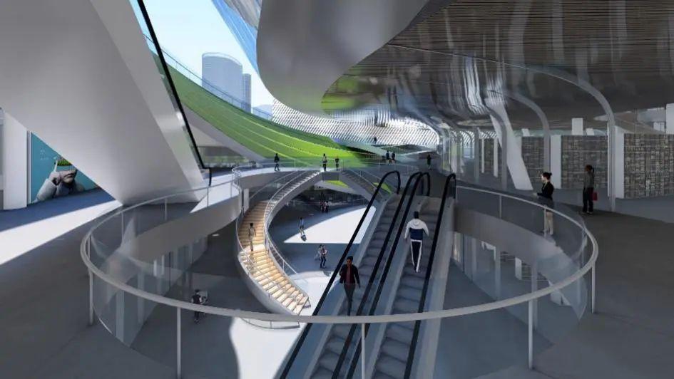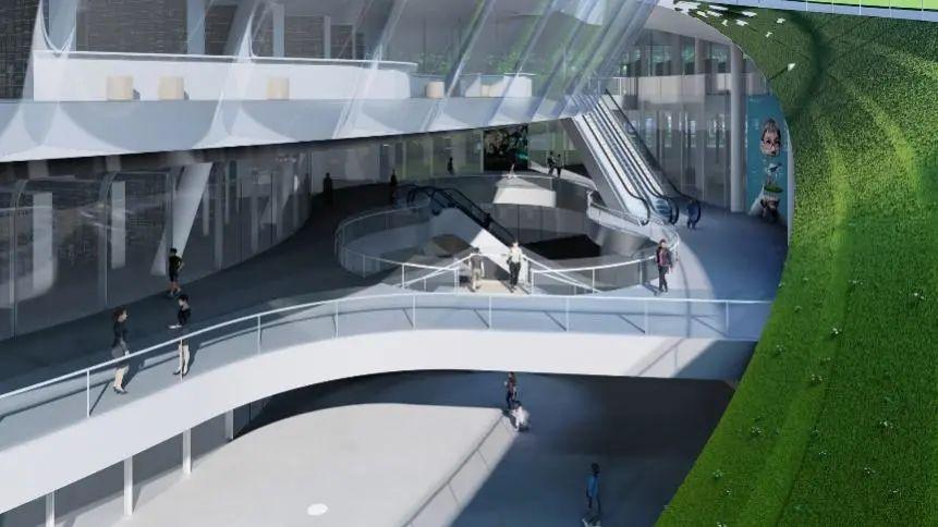 地铁站点的地下通道网延伸到了滨海客厅的地下,形成大面积地下活动空间。