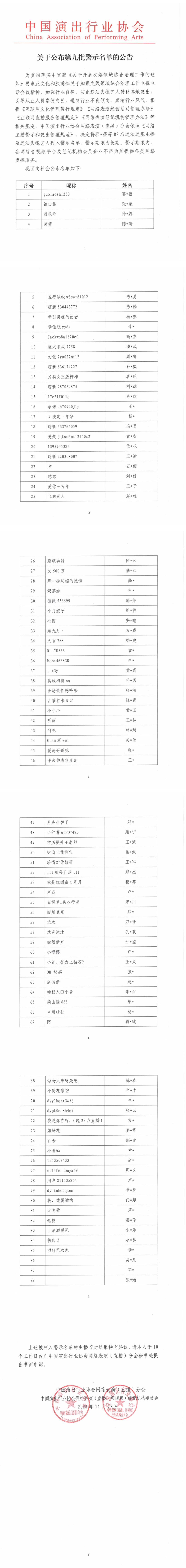 中国演出行业协会网络表演(直播)分会负责人:为进一步规范网络表演(直播)行业主播管理,净化网络表演(直播)环境,维护行业生态有序、良性、健康发展的秩序,中国演出行业协会网络表演(直播)分会自2018年2月起正式实施《网络表演(直播) 行业主播“黑名单”管理制度(试行)》,组织全体会员对严重违法违规主播在行业内实行联合抵制和惩戒。2020年末,在相关主管部门的指导下,中国演出行业协会网络表演(直播)分会对管理制度作了进一步修订,最终形成《网络主播警示与复出管理办法》(以下简称“办法”)。截至目前,分会已经陆续发布九批共446名网络主播警示名单。
