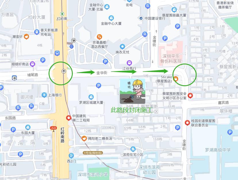 2021年11月26日至2022年11月25日,封闭罗湖区金华街(红岭南路口至金塘街路口段)进行施工