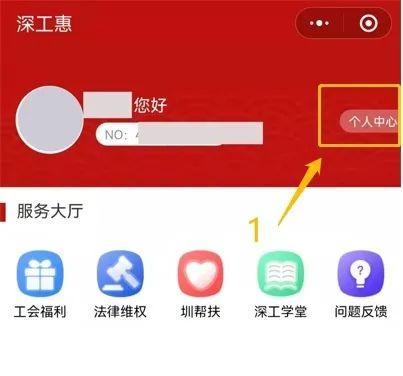 2、“深工惠”小程序——点击“个人中心”——点击“我的特权”。