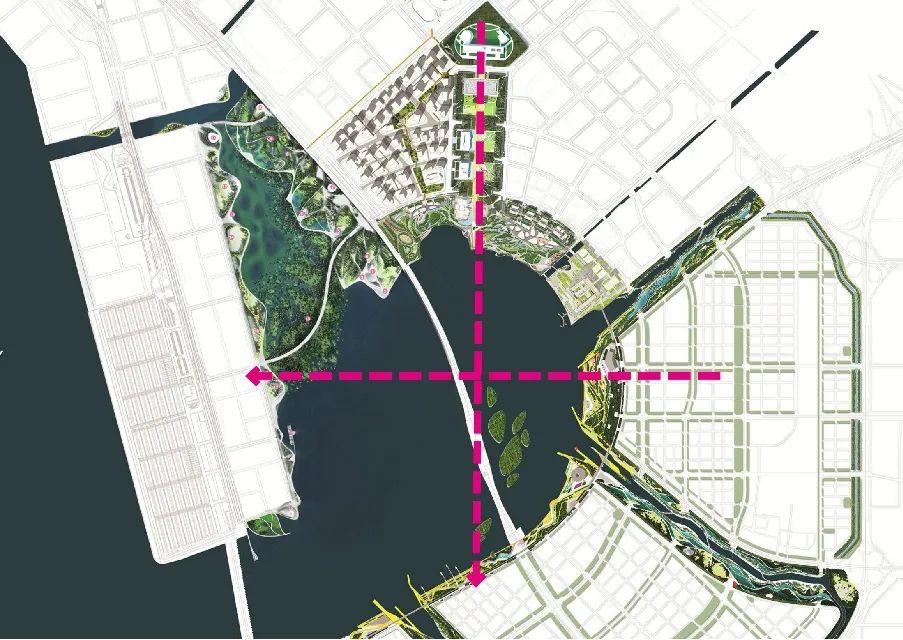 前海水城,其整体规划利用现有河道,形成放射性布局,将海水引入新建城区,成为城市发展的新框架。