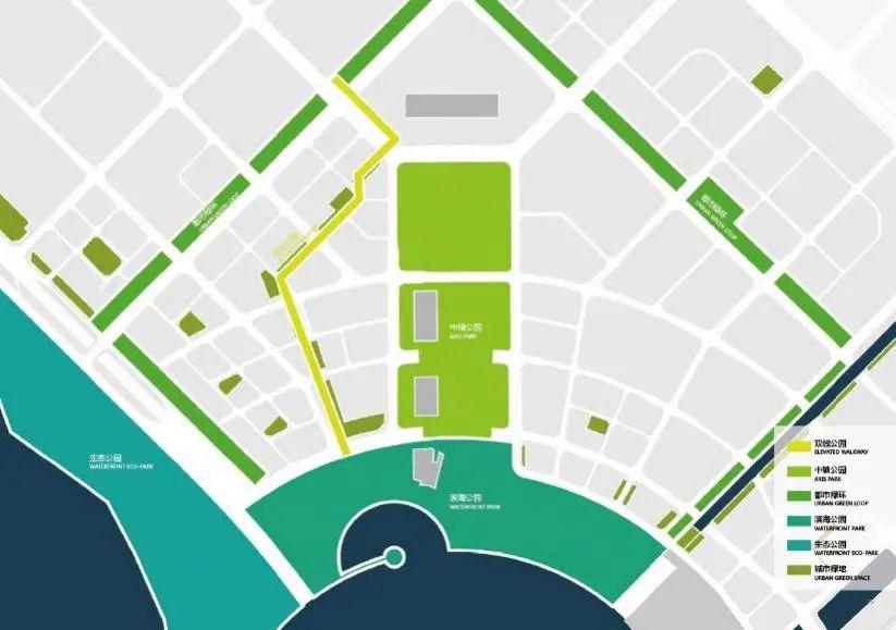 宝安中心区地处城市群围绕的核心位置,眺望前海湾,将受惠于湾区经济联动、交通互达和资源共享的发展前景。在此基础上,宝安中轴公园将会成为粤港澳大湾区内的重要城市公共场所。公园将不仅是传统意义的公园或者公共空间,而更会成为整个区域的文化核心、生态核心、交通服务核心。