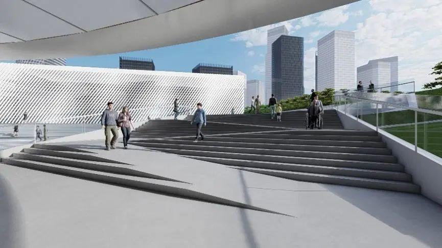 地铁站点的地下通道网延伸到了滨海客厅的地下,形成大面积地下活动空间。