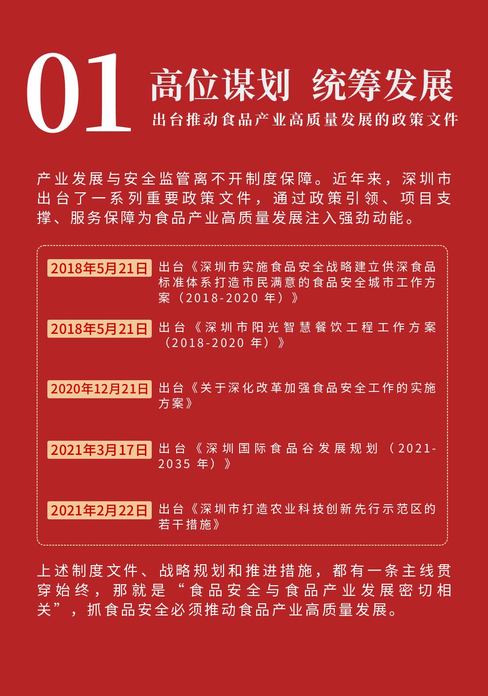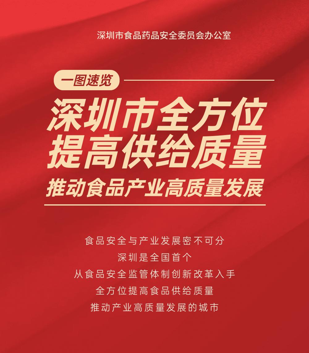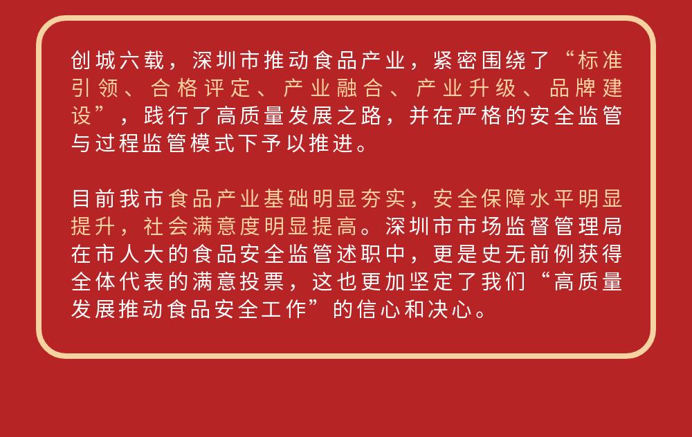 深圳创建国家食品安全示范城市一直在创新实施食品安全战略从食品安全监管体制创新改革入手全方位提高食品供给质量努力推动产业高质量发展以体制创新为手段以制度建设为引领、以工程建设为支撑深圳不断优化食品安全监管的体制机制在优化产业布局、推动产业融合、加强品牌建设、强化标准引领、鼓励认证等方面取得了显著成效这些成效表现在哪些方面呢?下面食安君将带大家一图读懂深圳食品产业高质量发展创城六年辛勤始得认可目前深圳市食品产业基础明显夯实食品产业获得高质量发展食品安全保障水平明显提升市民满意度明显提高未来深圳将继续把食品产业发展与安全监管紧密结合重视质量基础,把标准化放在突出位置通过社会共治提升总体的绩效守护市民“舌尖安全”最后请小伙伴们持续关注创城工作和我们一起创食品安全城,做健康深圳人!编辑整理 深圳食药安办转载请注明以上内容点在看,大家看!