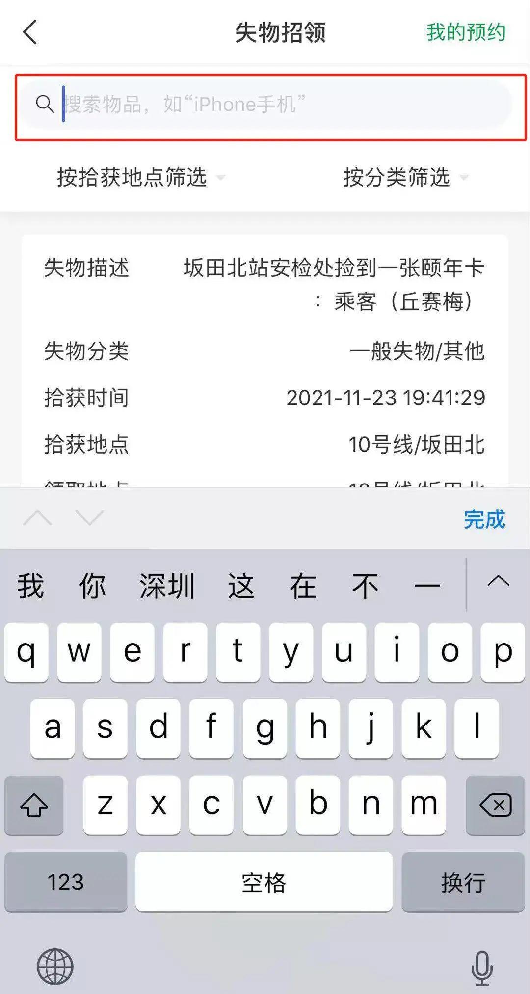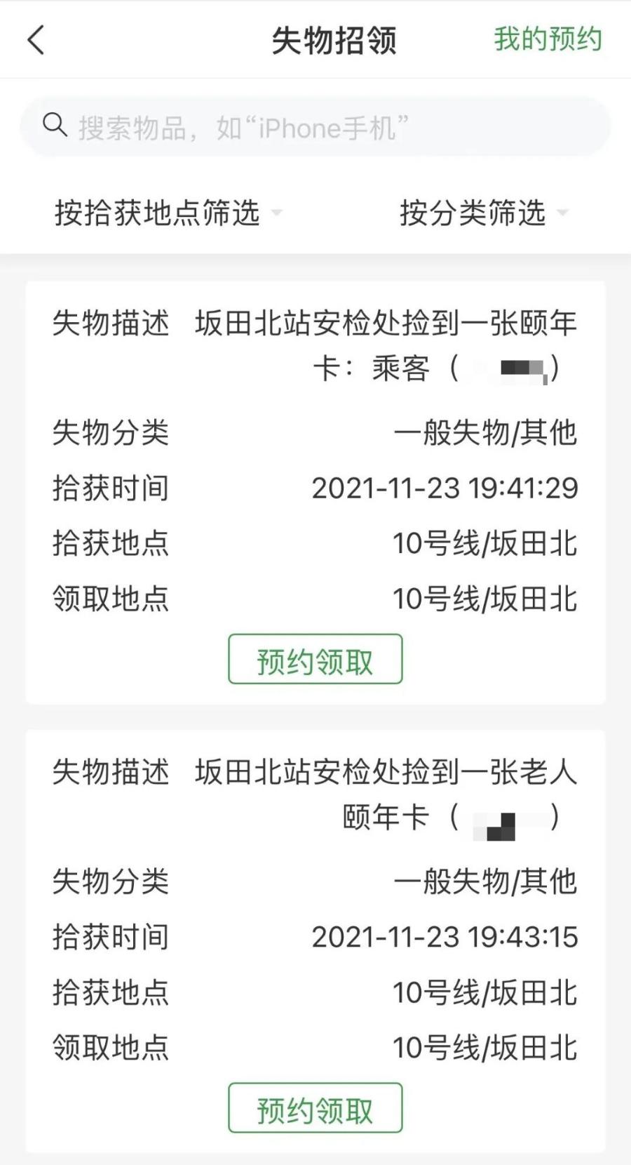 如找到丢失的物品点击【预约领取】并前往该站点领取失物