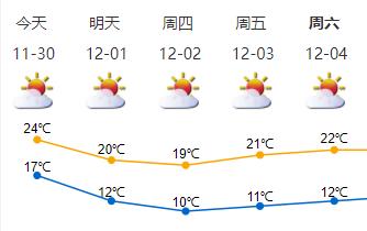受中等强度冷空气影响,11月30日至12月2日我市将出现大风降温过程,平均气温下降4-6℃,将出现今年下半年以来最低气温。