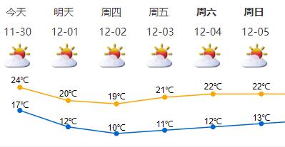 预计冷空气30日清晨抵深,北风加大,沿海、高地和海区最大阵风8-9级;30日夜间气温明显下降,12月1-3日早晨最低气温10℃左右,体感寒冷,白天最高气温19℃左右。