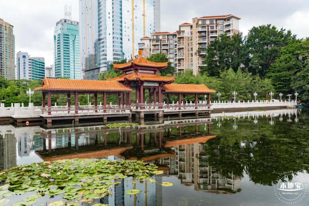 荔枝公园是较早的深圳公园之一,因园内500多棵老荔枝树形成的荔枝林而得名,园内还有荔湖、槟榔树、亭台楼阁、廊桥水榭等景观。