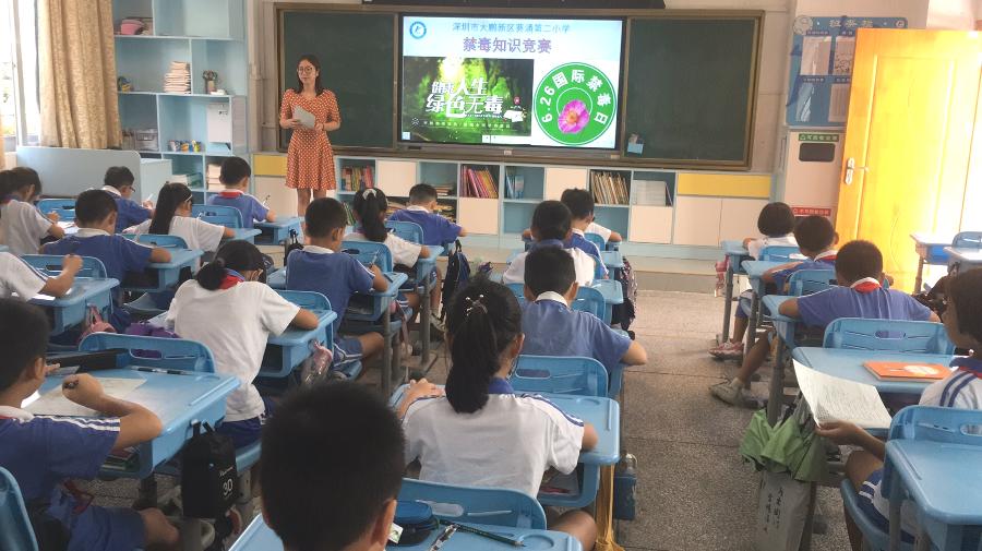 本学期,葵涌第二小学开展了四到六年级禁毒知识竞赛和五、六年级学生参加的青骄第二课堂的网络学习和禁毒知识竞赛活动,学生的参与率、课时完成率、竞赛率都达到100%,张正清、陶滢等74位学生在禁毒知识竞赛中得到满分100分,提高了学生对毒品危害的认识。