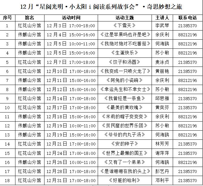 活动地点:光明区图书馆传麒山分馆、光明区图书馆红花山分馆
