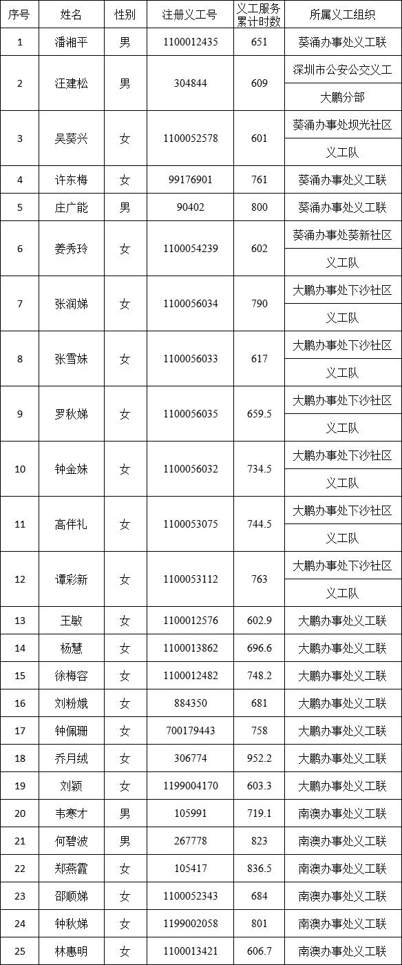为弘扬志愿服务精神,扩大志愿服务社会参与,进一步促进“志愿大鹏”建设,按照《深圳市星级志愿者资质认证管理办法》相关规定,结合新区工作实际,大鹏新区群团工作部、大鹏新区义工联于11月上旬开展了2021年大鹏新区星级志愿者资质认证工作,经志愿者申请,大鹏新区义工联审议,目前三星级资质认证共25人、四星级资质认证共65人。