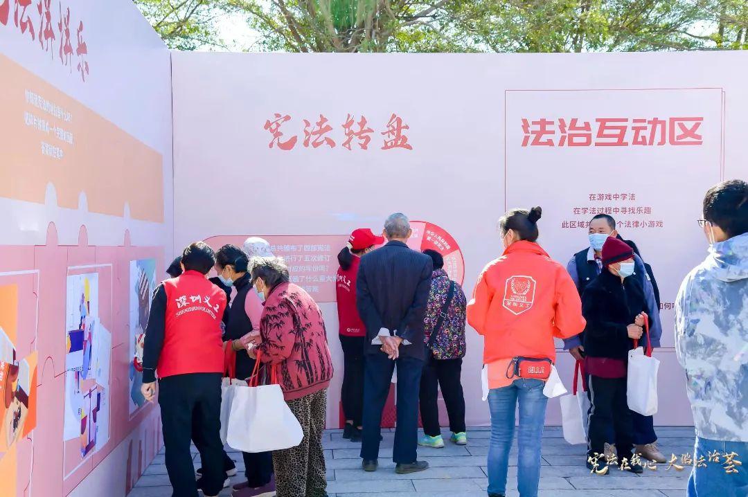 启动仪式后,极具趣味性、参与性、互动性的“宪法在我心 大鹏法治荟”法治快闪店限时登场。