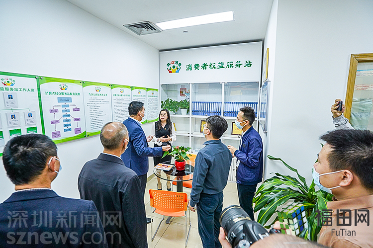 相关负责人参观福田区首创的“街道+社区+小区”三级平台消费维权模式示范点。