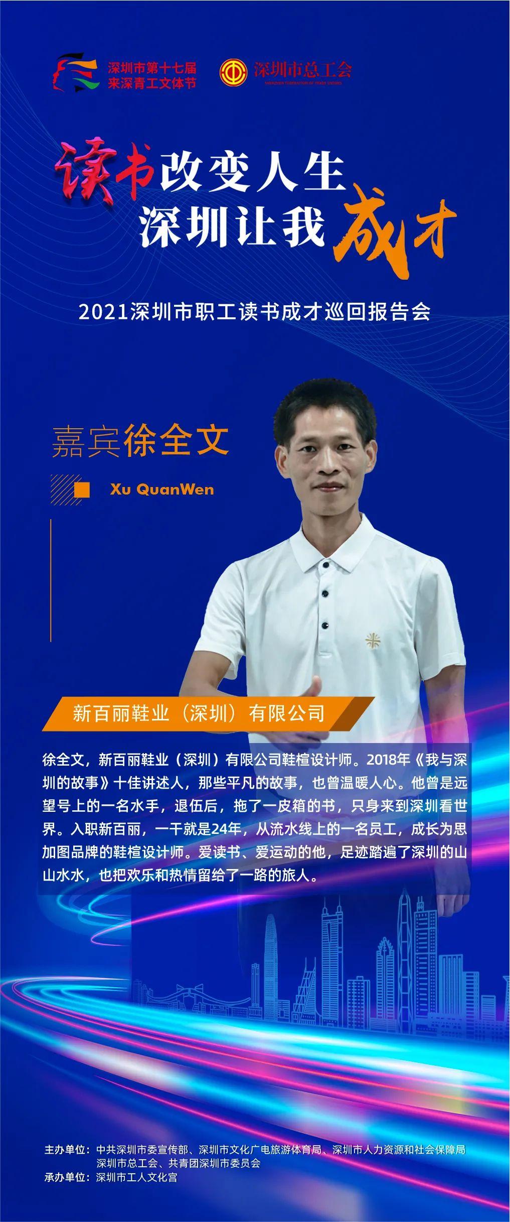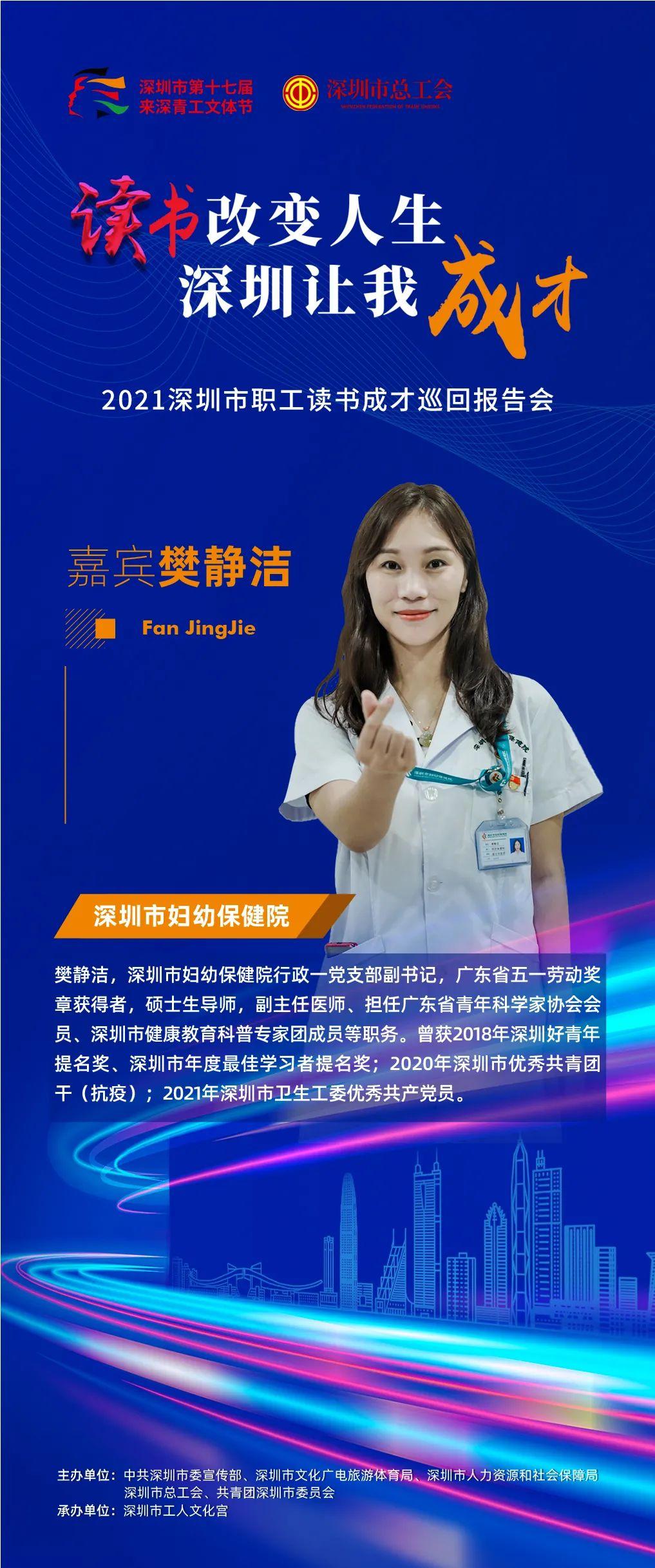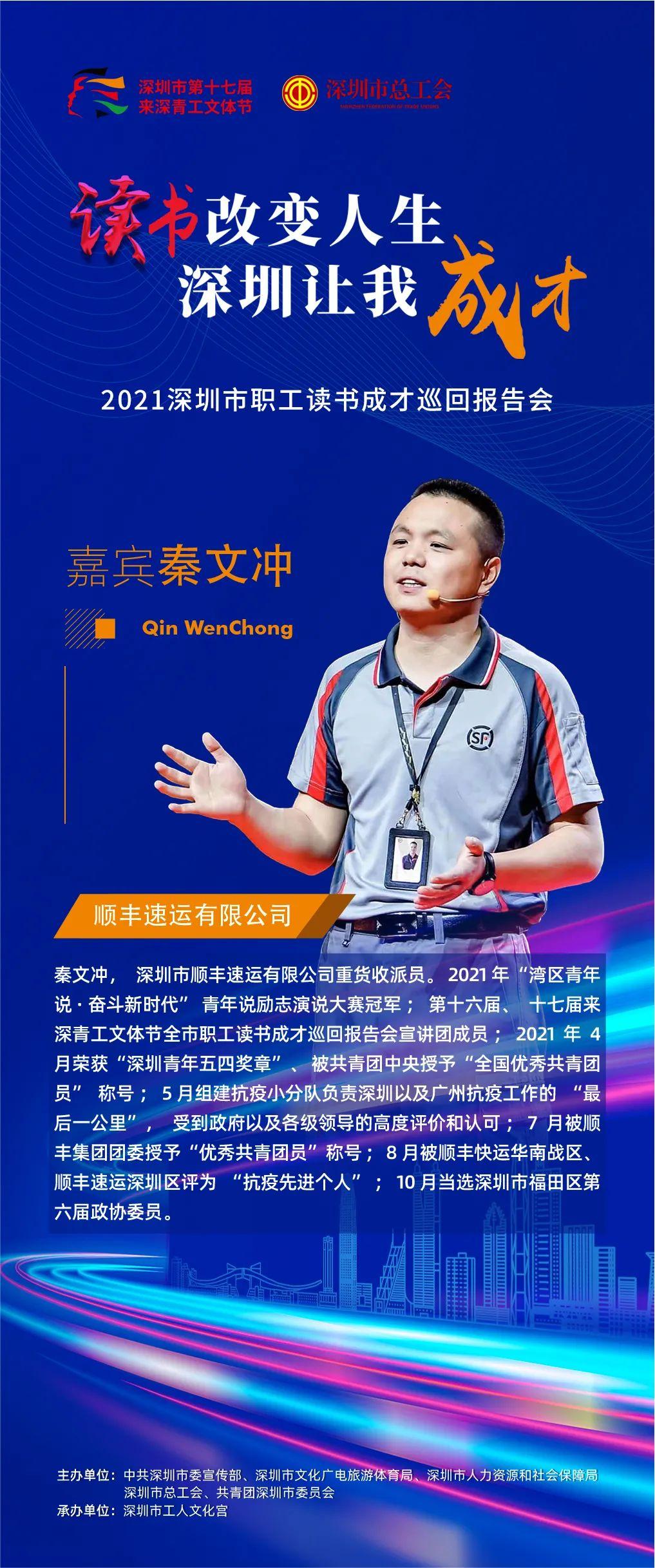 2021年深圳市第十七届来深青工文体节职工读书成才巡回报告会以“读书改变人生·深圳让我成才”为主题,选取16位优秀的职工组成宣讲团,通过线上+线下的方式,和大家分享自己读书成才的故事。目前,宣讲团的10位嘉宾已完成线上分享,并在“深圳工会”视频号正式上线。