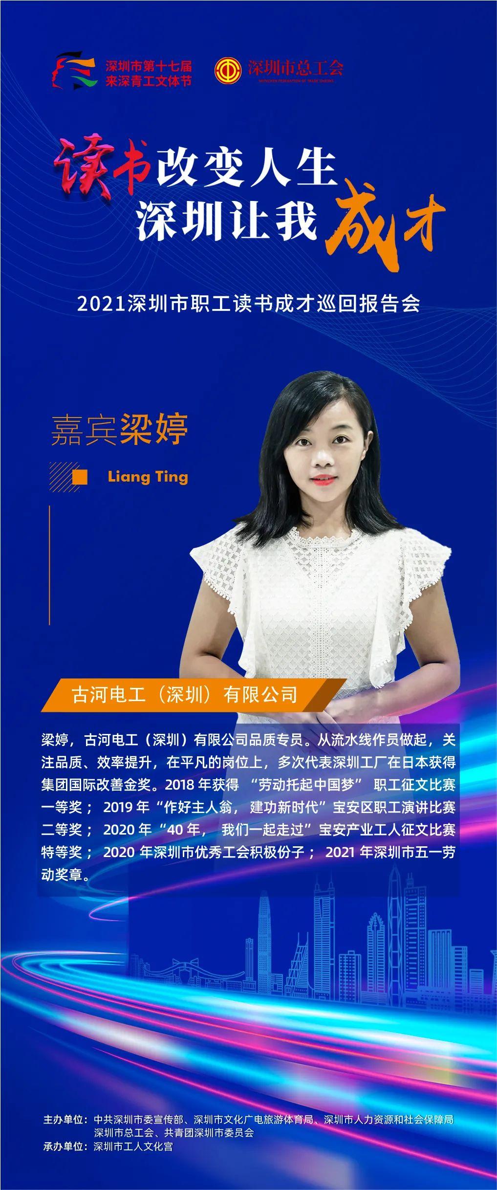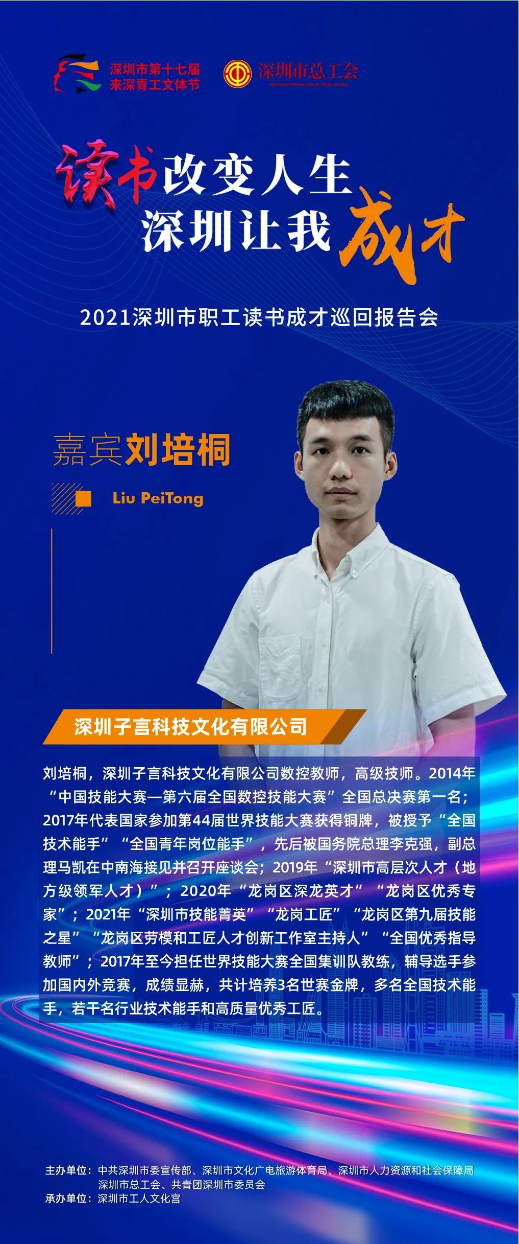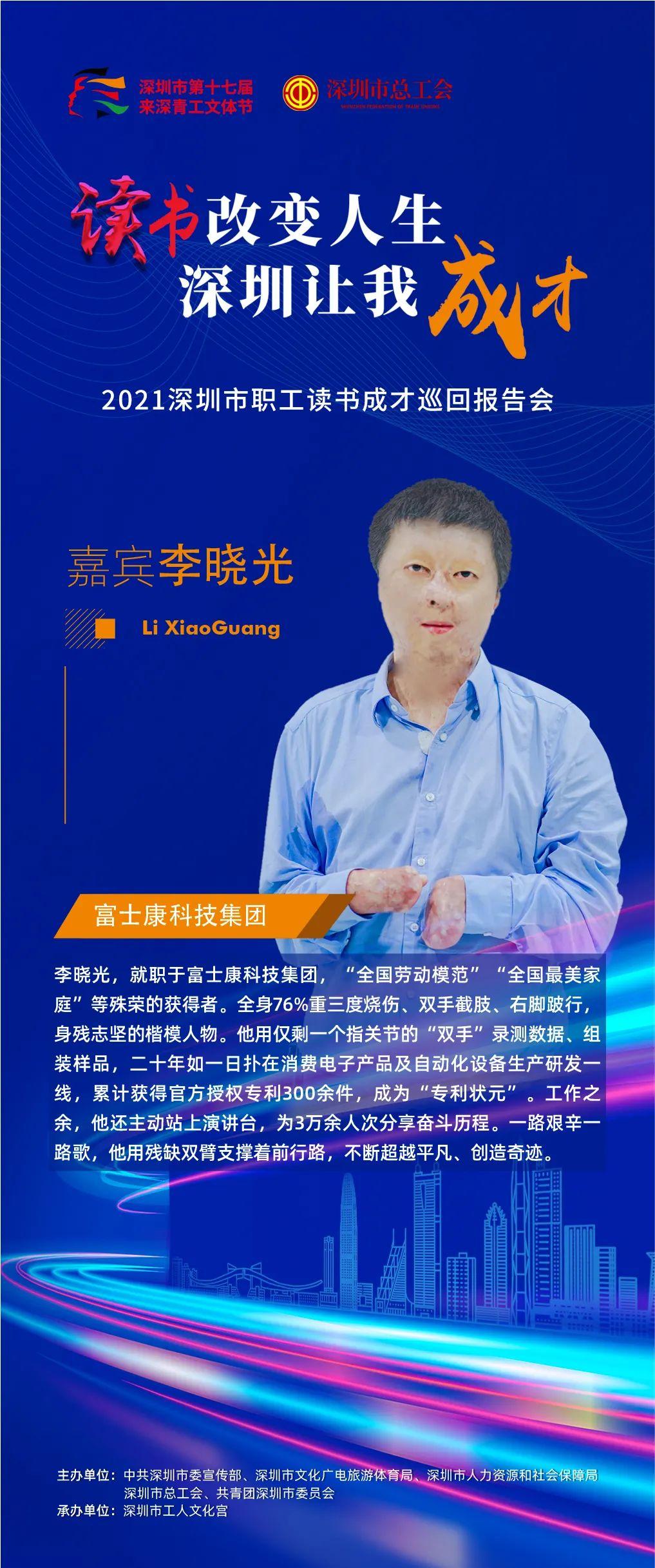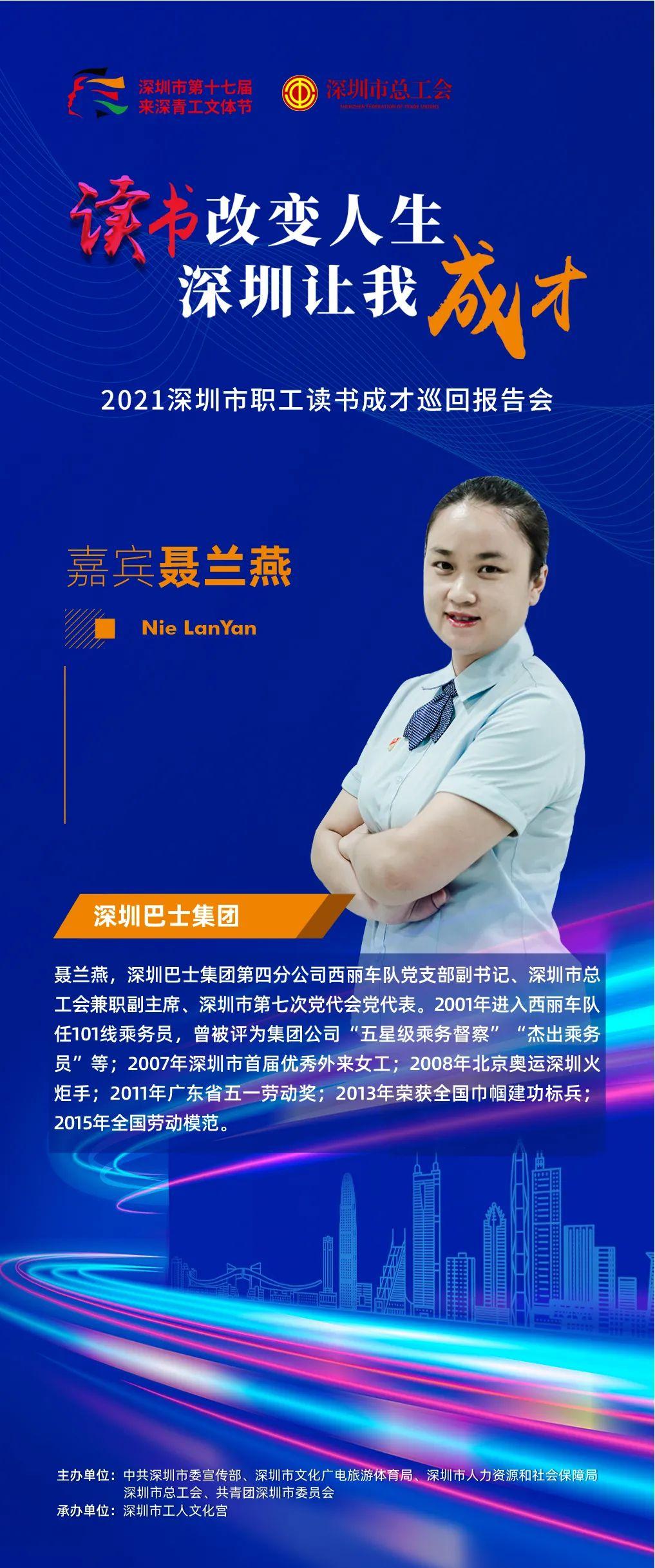 2021年深圳市第十七届来深青工文体节职工读书成才巡回报告会以“读书改变人生·深圳让我成才”为主题,选取16位优秀的职工组成宣讲团,通过线上+线下的方式,和大家分享自己读书成才的故事。目前,宣讲团的10位嘉宾已完成线上分享,并在“深圳工会”视频号正式上线。