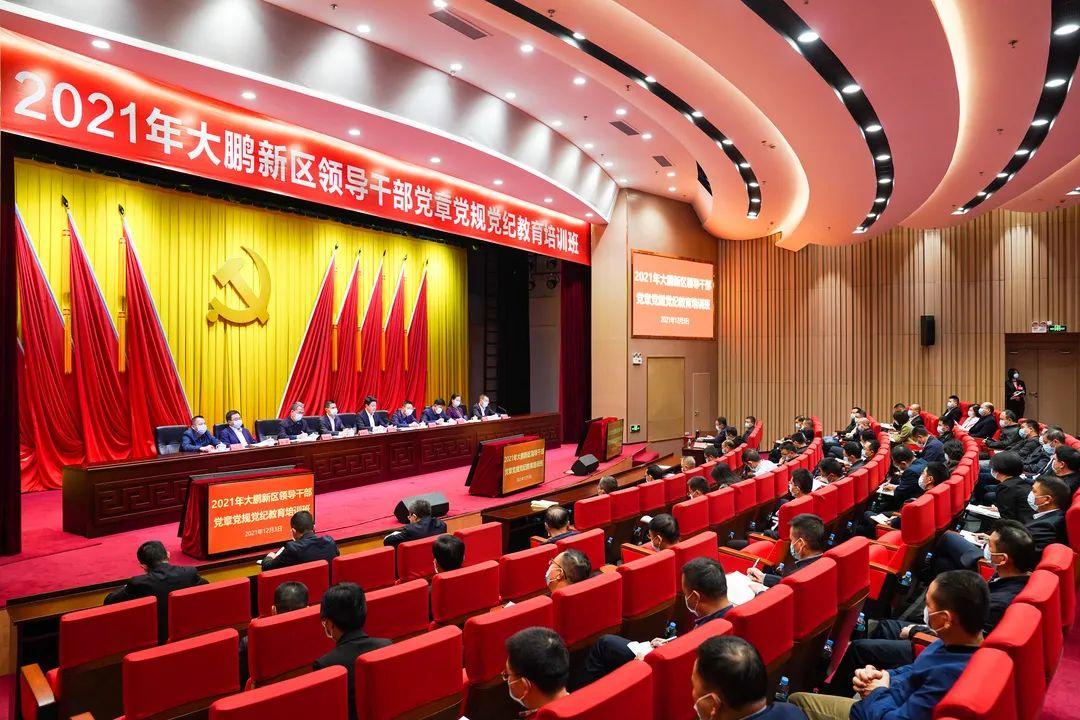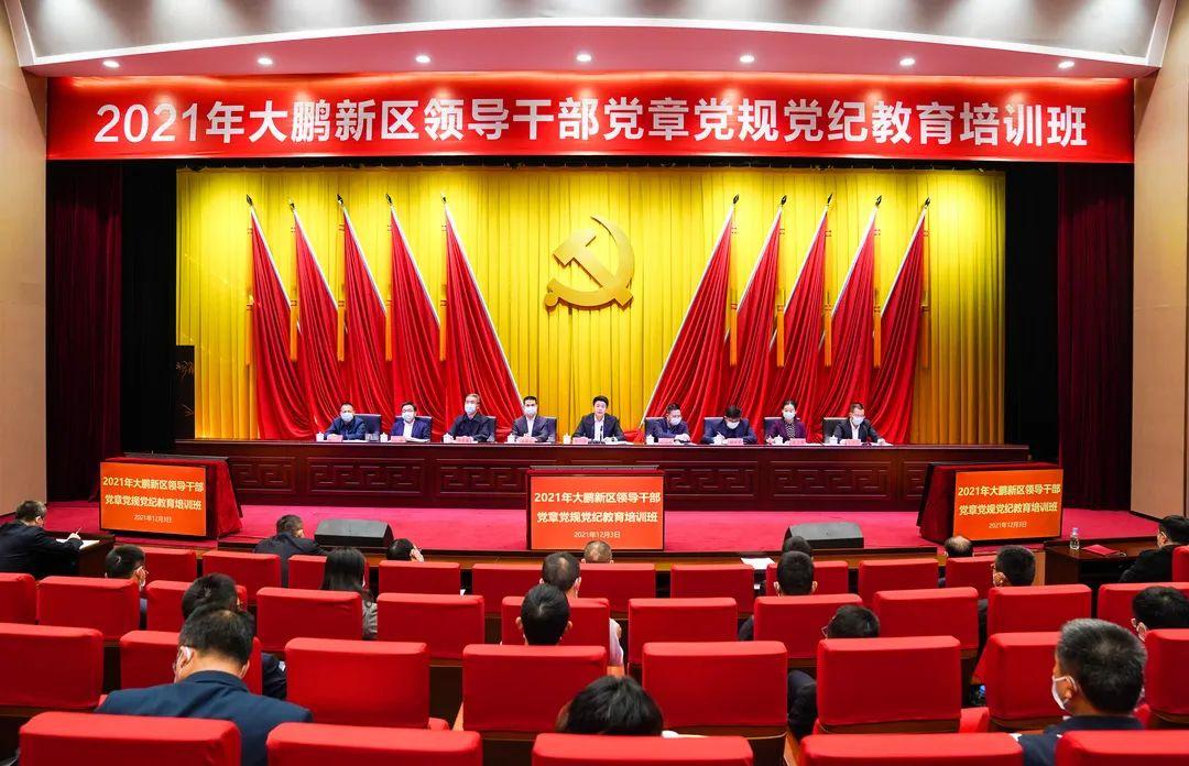 12月3日下午,2021年大鹏新区领导干部党章党规党纪教育培训班举行。培训班以“学党史悟思想,守纪律铸忠诚”为主题,深入学习贯彻党的十九届六中全会精神,以及习近平总书记“七一”重要讲话精神和关于全面从严治党重要论述,进一步增强“四个意识”、坚定“四个自信”、做到“两个维护”,永葆忠诚干净担当的政治品格,为新区高质量发展提供坚强政治保证。新区党工委书记刘广阳出席并讲话,新区领导班子成员参加培训班。