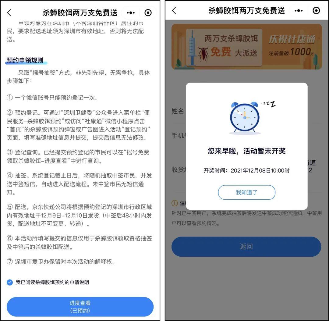 12月2日16:00时至12月7日16:00时,市民可免费登记预约;