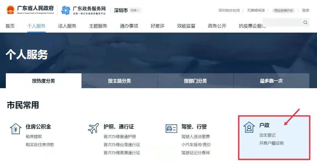 第一步:搜索“广东政务服务网”(网址:gdzwfw.gov.cn),切换至“深圳市”办事模块。