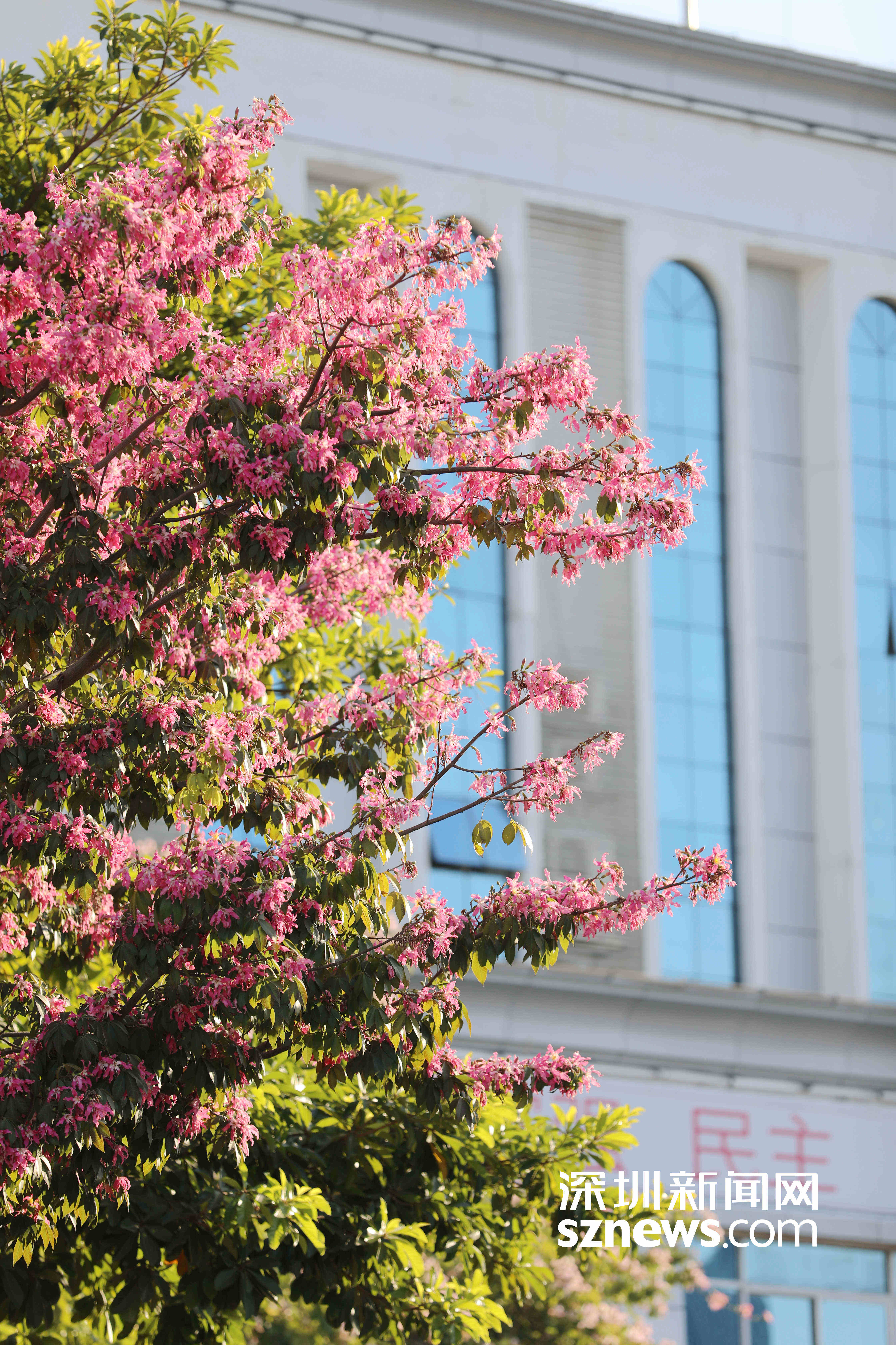 读特客户端·深圳新闻网2021年12月6日讯(记者 林秋颖)近日,光明的美丽异木棉惊艳盛放。粉红色的花团缀满枝头,层层叠叠,远远望去,与蓝天白云相映成趣,甚是好看。12月6日,跟随记者的镜头,一起捕捉这冬日的浪漫“粉”吧。
