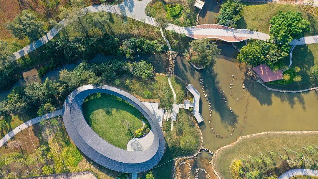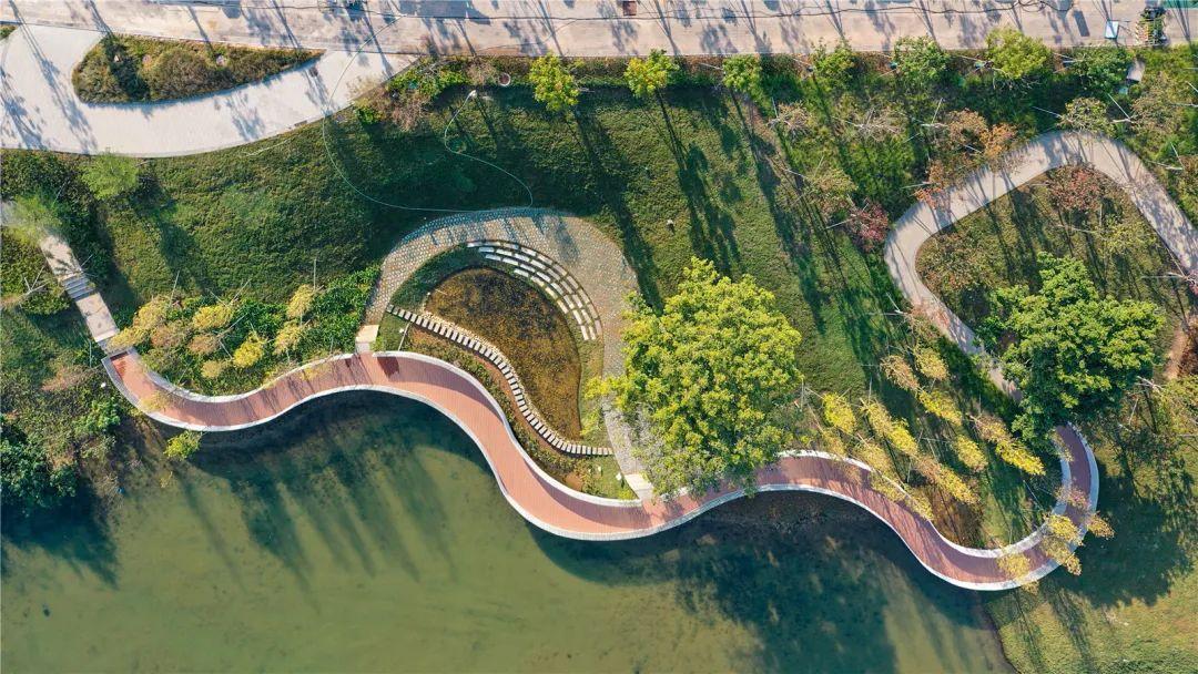 项目建设与设计以生态保护为出发点,公园设计主题为“古树新芽、渡月飞花”,设计定位为以慢生活为基调的休闲公园。