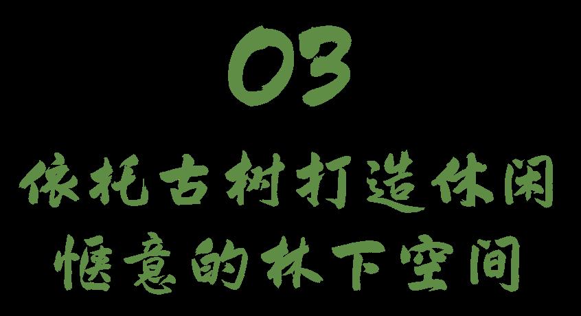 项目建设从保护和提升古树生长环境出发,结合场地原始条件,以慢生活为基调,重新梳理,以修旧如旧,和谐统一为设计原则,依托古树林荫打造休闲惬意的林下空间。