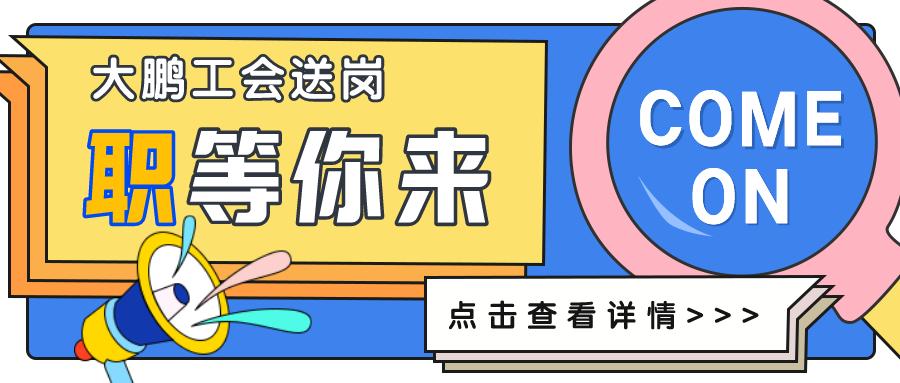 此前,大鹏新区总工会发布了第一波招聘信息今日,第二波招聘速递又来啦。▲点击回顾第一波招聘信息为拓宽企业用工渠道帮助企业缓解招工难题促进人力资源供需匹配大鹏新区总工会发挥职工“娘家人”作用为大家汇总了新区企业的最新招聘信息本次招聘信息涵盖编程、研发、运营酒店服务、制造业等多个行业更多岗位、更多机会,总有一款适合你。END内容来源 大鹏新区群团工作部转载请注明信息来源分享收藏点赞在看