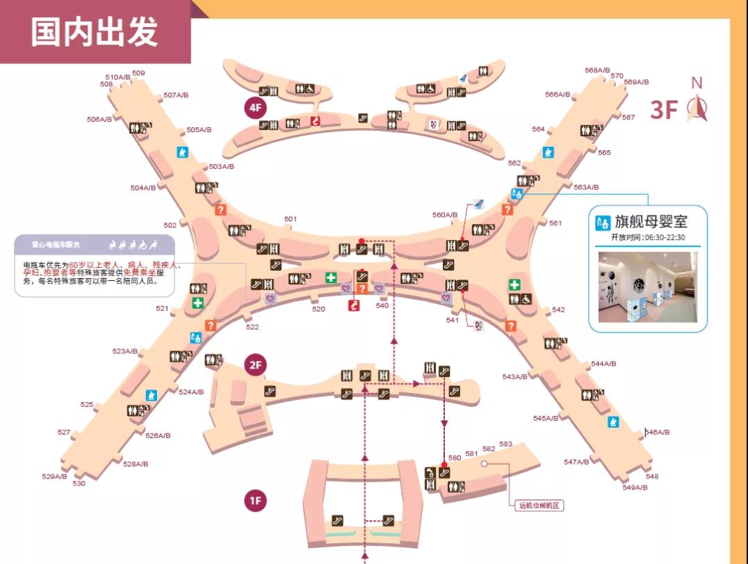 四层(4F)为“头等舱、公务舱”旅客休息室