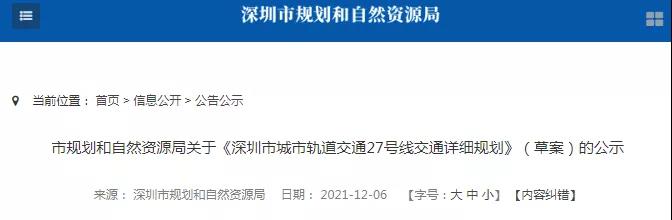 深圳市规划和自然资源局发布了地铁24、27号线的规划草案,公示期直至明年1月4日。
