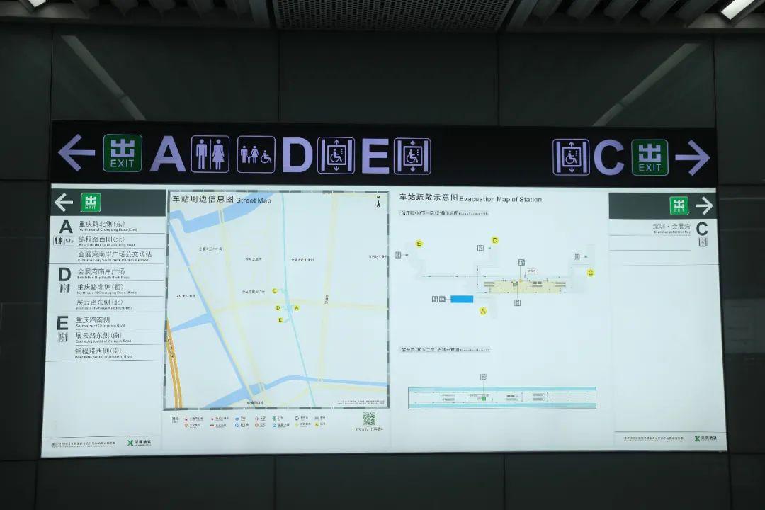 车站共设置 4 个出入口,分别为:A、C、D、E。其中,A、C、D出入口位于重庆路北侧,E出入口位于重庆路南侧。