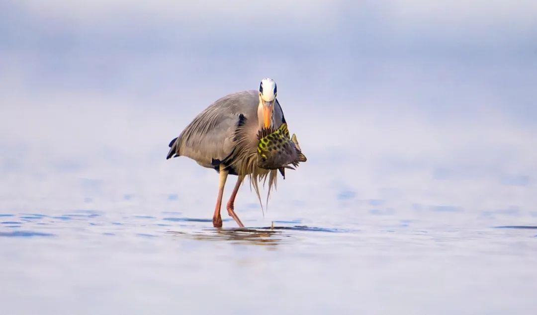 ▲享受金钱鱼的苍鹭。朱兴超 摄