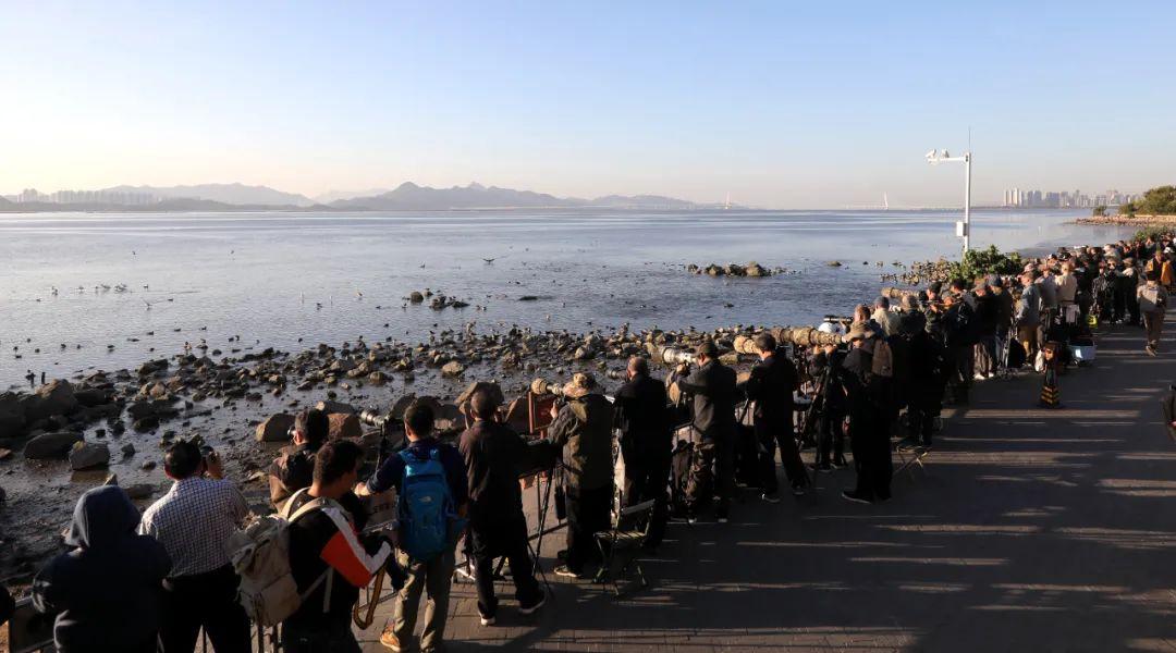 冬日的清晨,请你起个大早,乘坐地铁线9号线到深圳湾公园站,从C出口走出来,南行30米,眼前会豁然开朗,风情万种的深圳湾一览无余地呈现在你面前,海岸边人聚集最多的地方,就是观鸟的最佳位置。