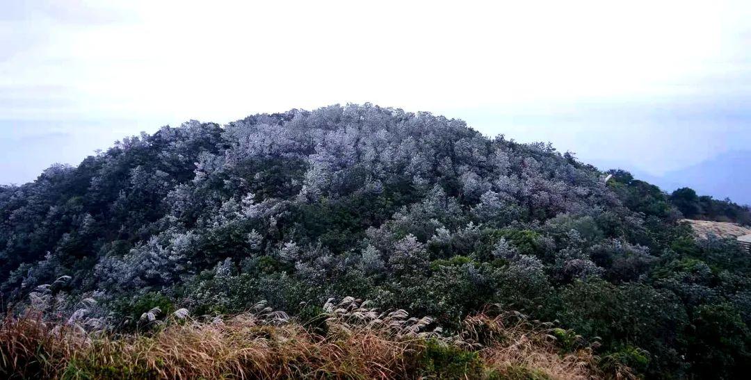 ▲2021年1月8日凌晨,深圳的最高点——梧桐山顶峰的树木结满了美丽的冰挂。