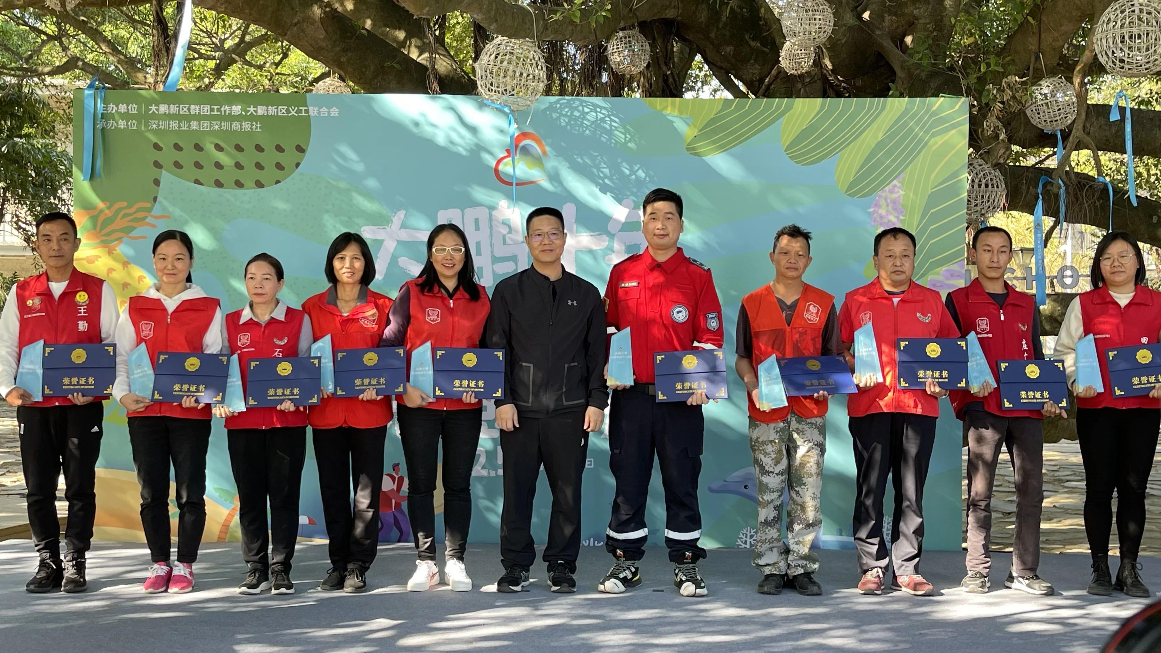 活动上,由31家生态环保、应急救援、心理健康、公益基金、自然科普等领域公益组织组成的“大鹏新区志愿服务发展促进联盟”宣告成立,成员单位共同宣读了倡议书。活动还进行了志愿服务评先推优工作,表彰了10位在过去10年里持续默默奉献、矢志志愿服务“大鹏十年志愿之星”,广泛推广“送人玫瑰 手有余香”的价值观念,增强志愿者的获得感,提升志愿服务的社会认同感,进一步发挥典型示范引领作用。