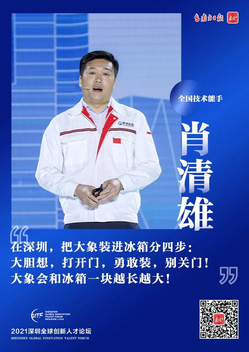 “如果你和我一样不服输,如果你和我一样都想拔刺、都想把大象装进冰箱,来深圳!下一站,深圳等你!”肖清雄说。