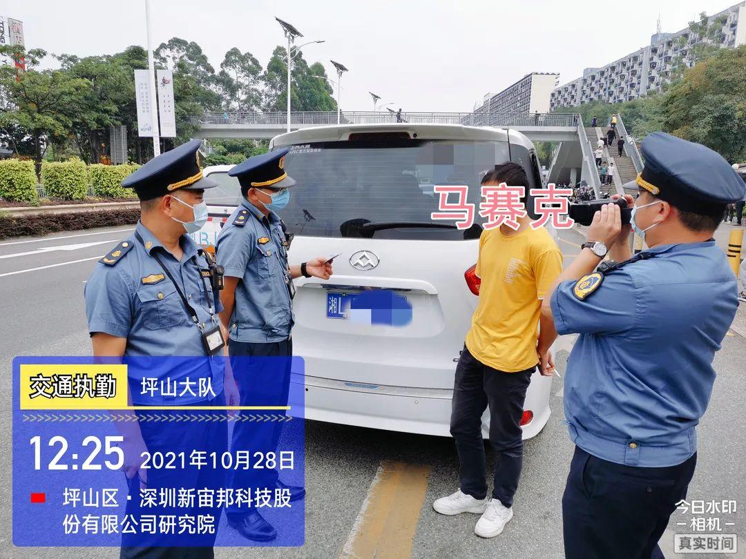 前段时间,执法支队坪山大队在坪山比亚迪生活区周边开展执法行动,发现一辆湘L号牌的7座车一直停靠在公交站台,疑似等待乘客上车。