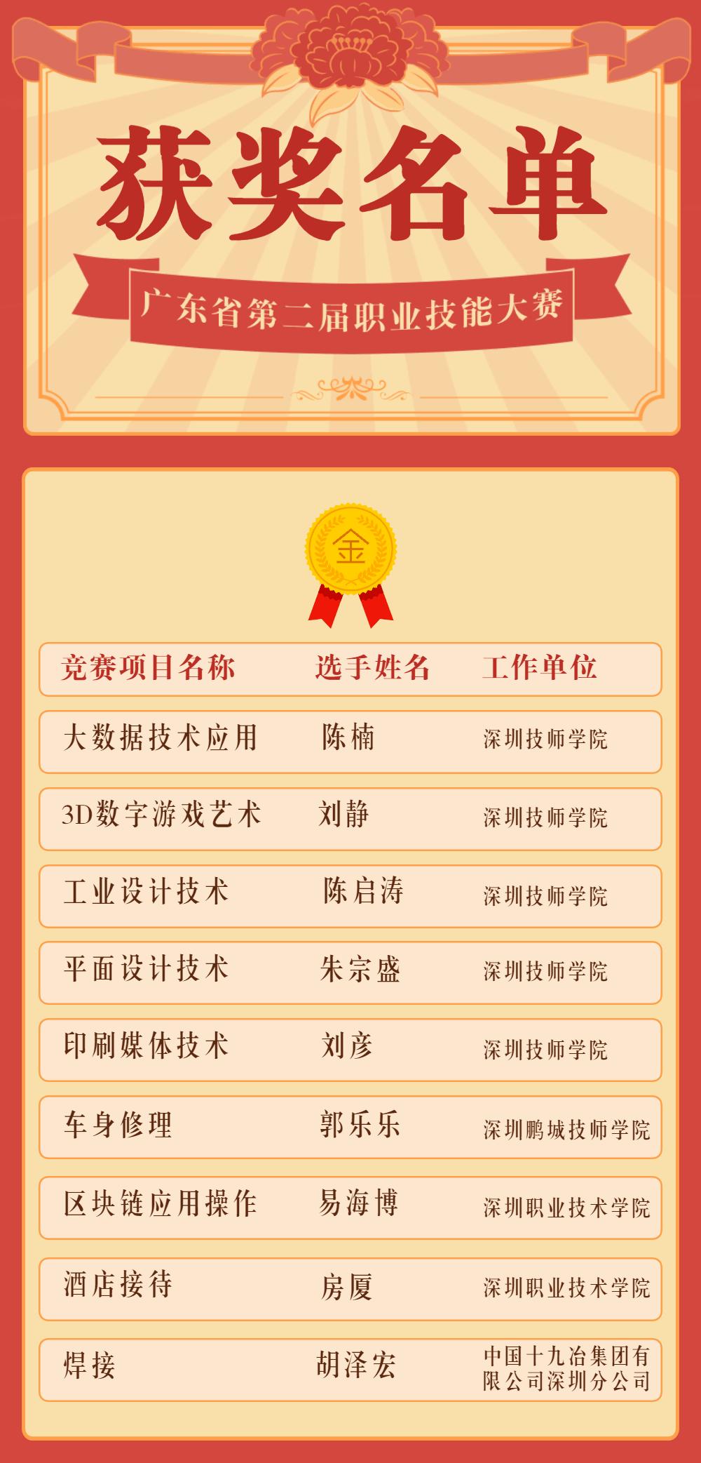 12月6日,广东省第二届职业技能大赛(广州赛区)落下帷幕,深圳选手共荣获9金11银6铜11优胜奖,金牌数、奖牌数稳居全省前列。