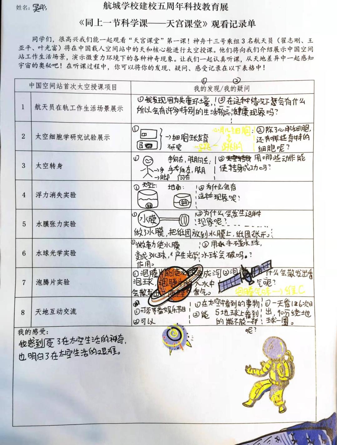 活动结束后,孩子们都说,这一次的科学课实在太好玩了,期待下一次“天宫课堂”早日到来!也期待着学校接下来的科技教育展系列活动,能有更多机会体验科技的奇妙。