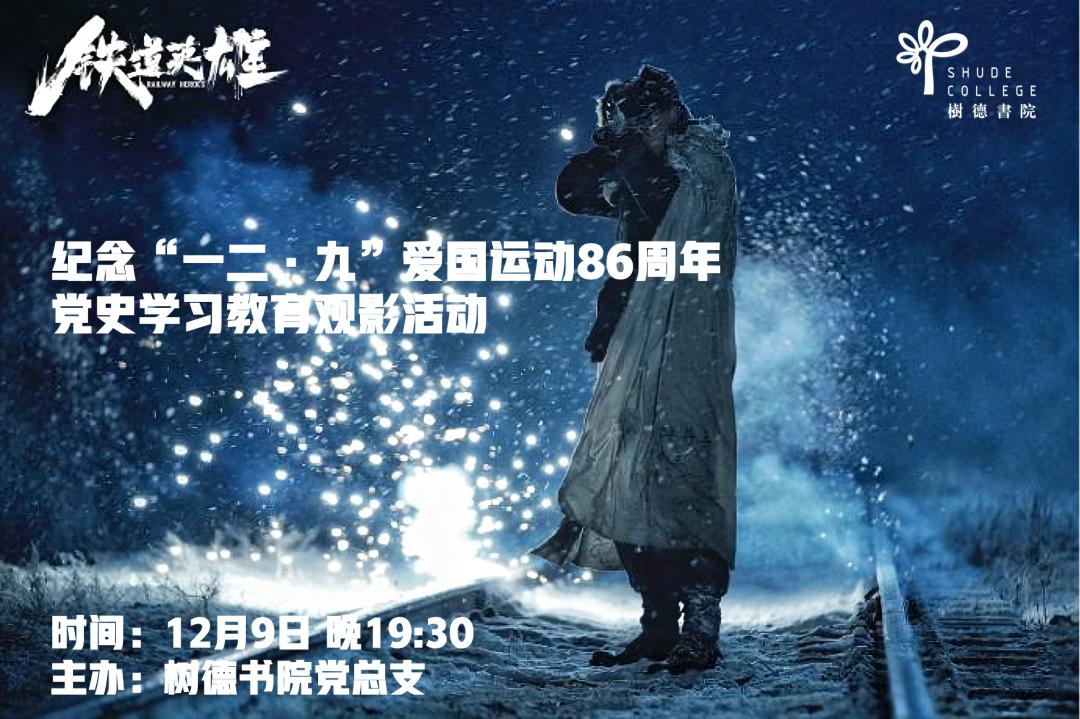 树德书院党总支将开展特别党史主题教育活动,组织书院师生观看爱国电影《铁道英雄》,以此追忆革命先烈,激励青年坚定理想信念。