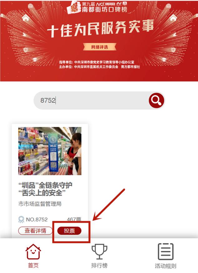 2.点击图片进入活动首页,在活动首页搜索编号“8752”进行投票