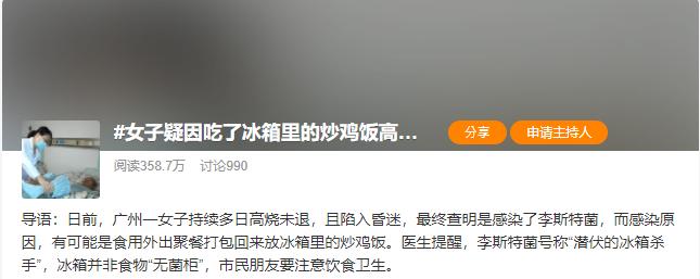 原因是吃了聚餐后放进冰箱的剩饭