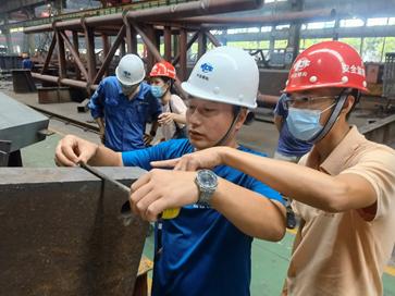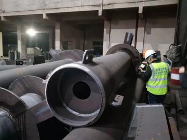 ▲钢构件出厂前检查 ▲焊缝UT探伤