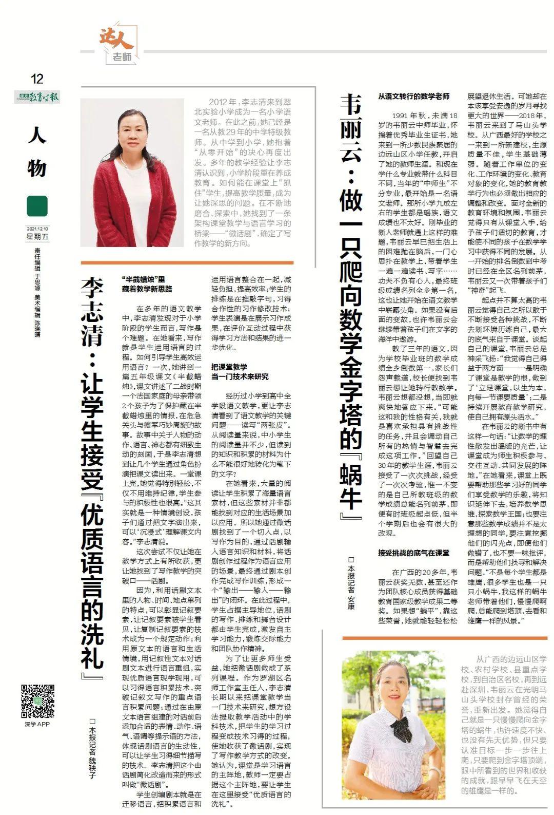 为了让更多师生受益,她把微话剧做成了系列课程。作为罗湖区名师工作室主任人,李志清长期以来把课堂教学当一门技术来研究,想方设法提取教学活动中的学科技术,把学生的学习过程变成技术习得的过程,使她收获了微话剧,实现了写作教学方式的改变。她认为,课堂是学习语言的主阵地,教师一定要占据这个主阵地,要让学生在这里接受“优质语言的洗礼”。