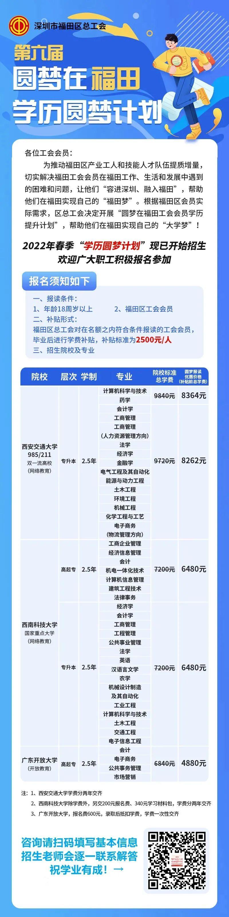 学历提升 | 补贴2500元!福田区总工会圆梦计划2022年春季招生开始报名