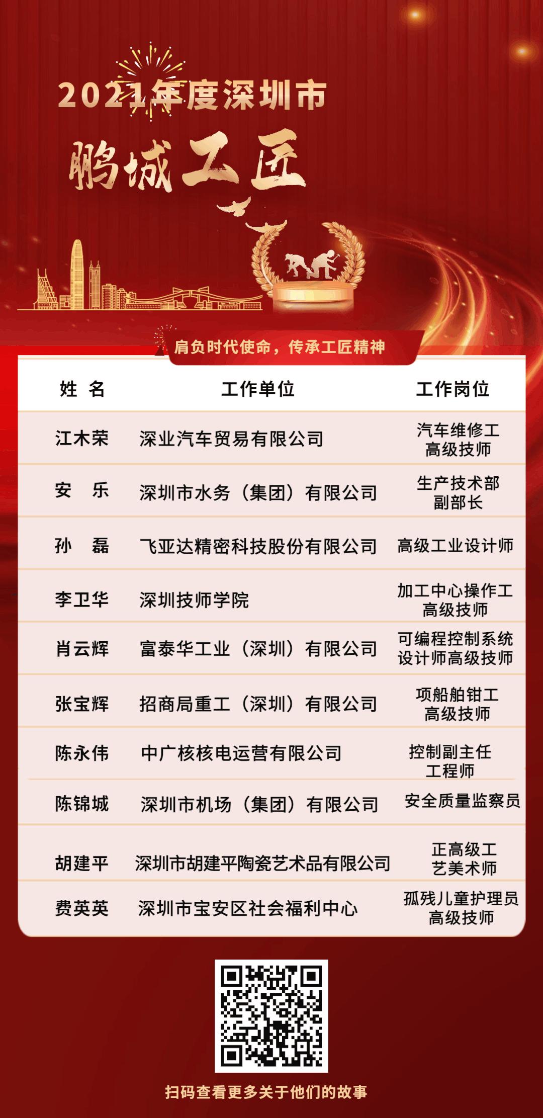 “鹏城工匠”“工匠之星”“深圳技术能手”