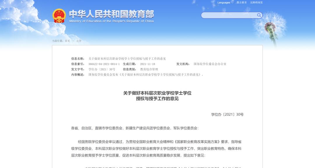 近日,国务院学位委员会发布《关于做好本科层次职业学校学士学位授权与授予工作的意见》,将职业本科纳入现有学士学位工作体系,按学科门类授予学士学位,学士学位证书格式一致。
