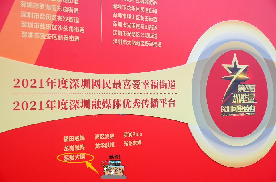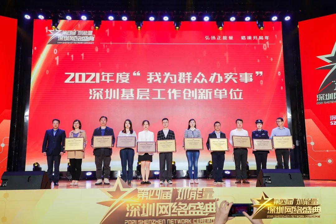 弘扬正能量,唱响好声音。12月15日,由深圳市互联网行业联合会指导,深圳市网络媒体协会、深圳市自媒体协会主办的第四届“圳能量”深圳网络盛典成功举办。来自政府职能部门、各区、街道、企业和媒体的领导及嘉宾出席活动,一起盘点深圳互联网行业一年来的新探索、新成就、新经验。活动现场公布了“2021年深圳正能量十件大事”,并揭晓了“第十五届深圳市网络文化奖”“2021深圳年度网络答政成效示范单位”“2021年‘我为群众办实事’深圳基层工作创新单位”“深圳网民最喜爱幸福街道”“深圳融媒体优秀传播平台”等多个奖项。