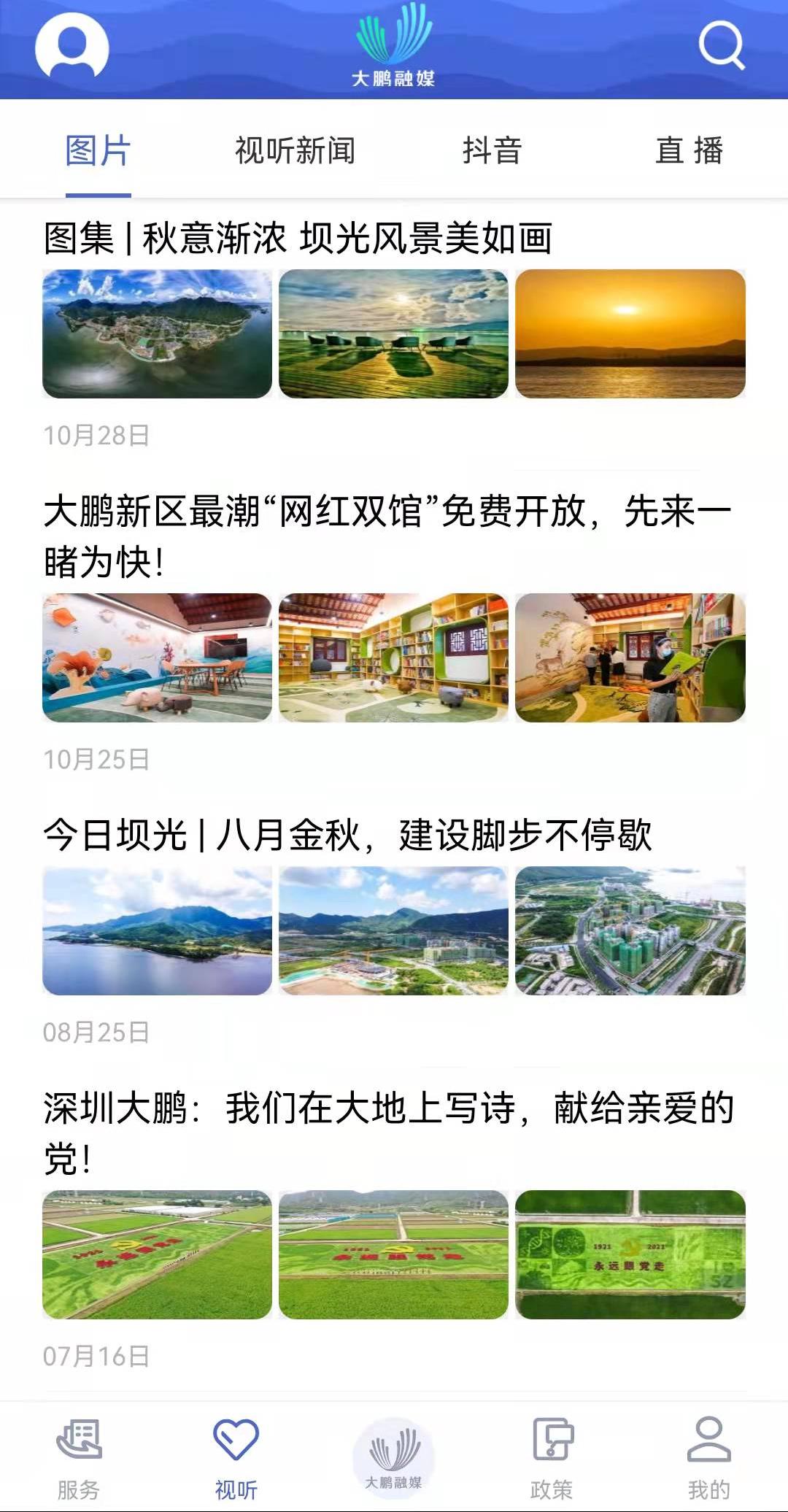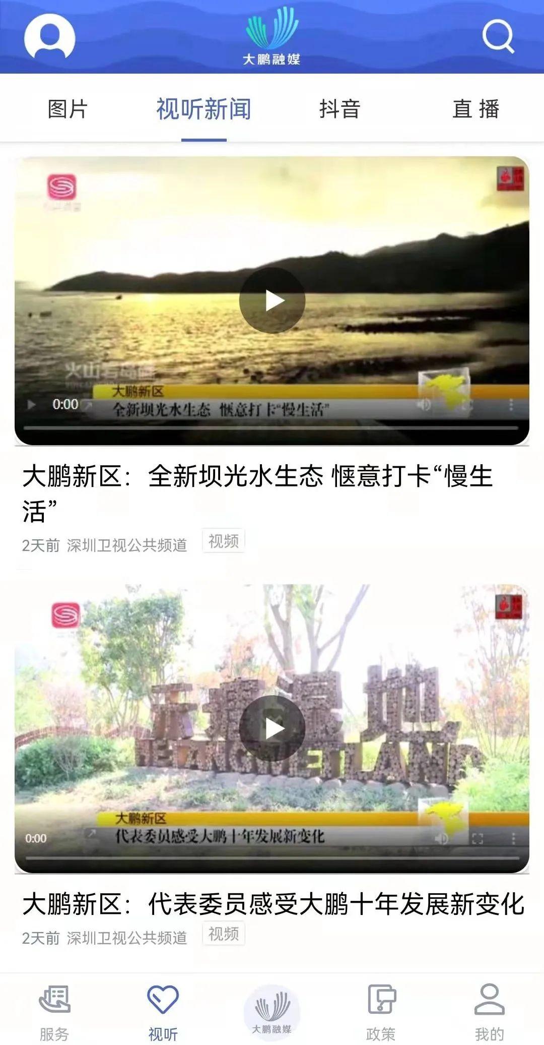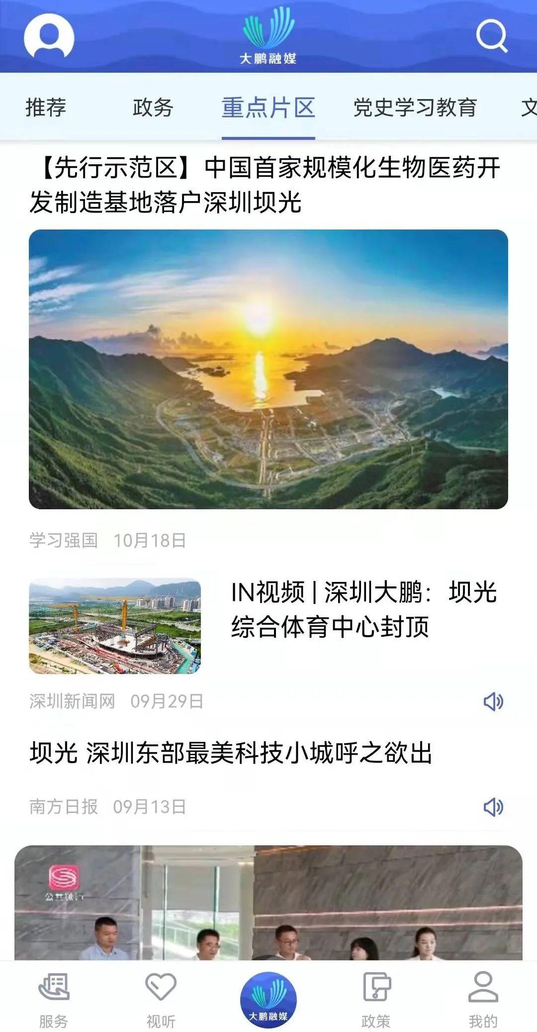 为了让用户更直观更方便地了解到大鹏新区最新信息,“深爱大鹏”APP在首页设置政务、重点片区、产业、政策、旅游、民生等热点栏目,同时,侧重以图、数、视频为主要呈现方式,集中展现各级各类媒体关于大鹏的报道,为市民提供“信息盛宴”。