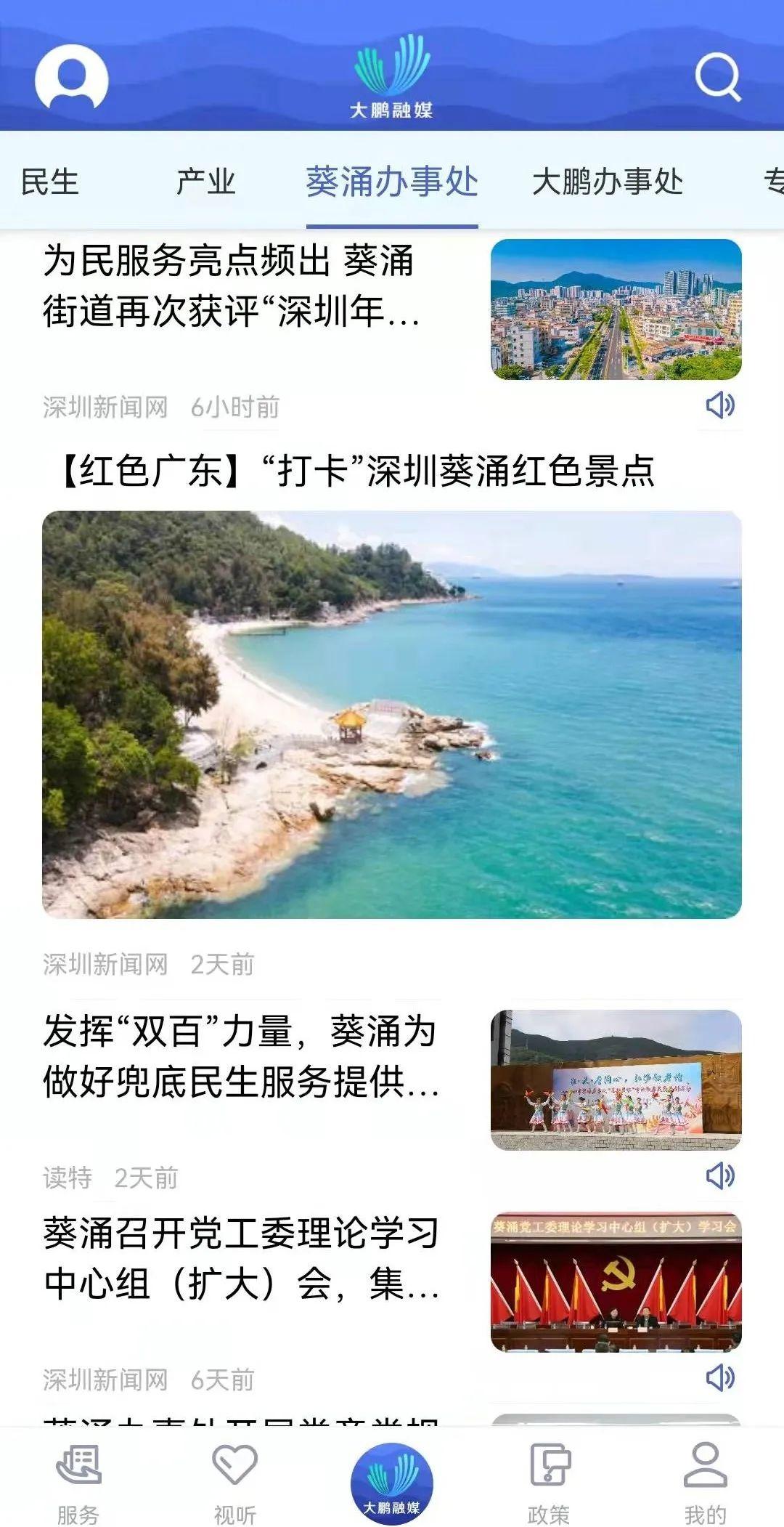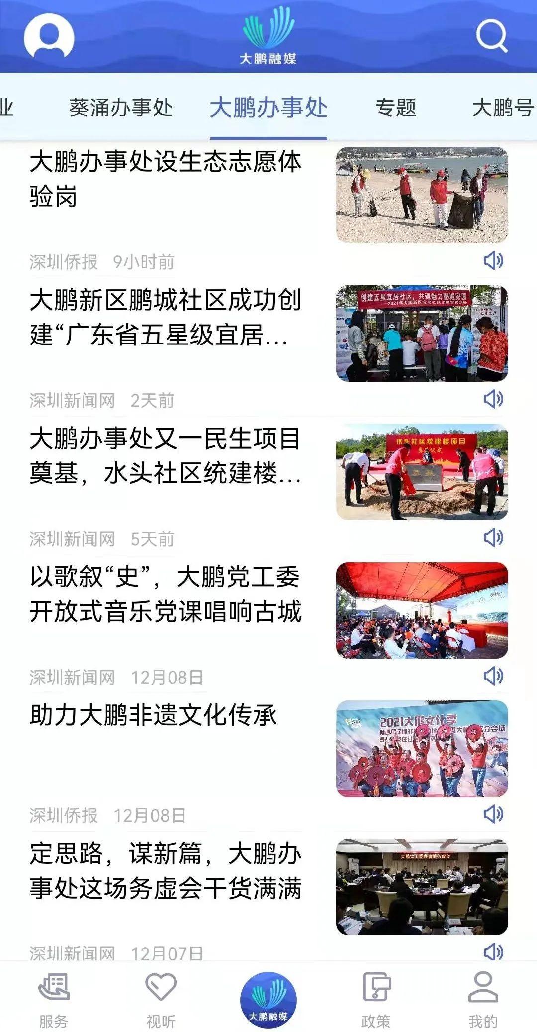 “深爱大鹏”APP作为大鹏新区的云上“档案馆”、线上“储存器”,融合了大鹏新区综合管理的网、微、端、抖等新媒体平台于一体,充分体现了新闻+政务、+产业、+服务的功能,横向融合区内各类公众号,纵向延伸至乡街、部门,最大限度展示全区上下工作举措和发展成就,市民想了解的新区情况都可在APP中搜索。